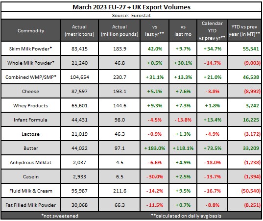 March 2023 butter export volume is currently under review by Eurostat due to anomalies in the data that may have resulted in an incorrect reported volume.