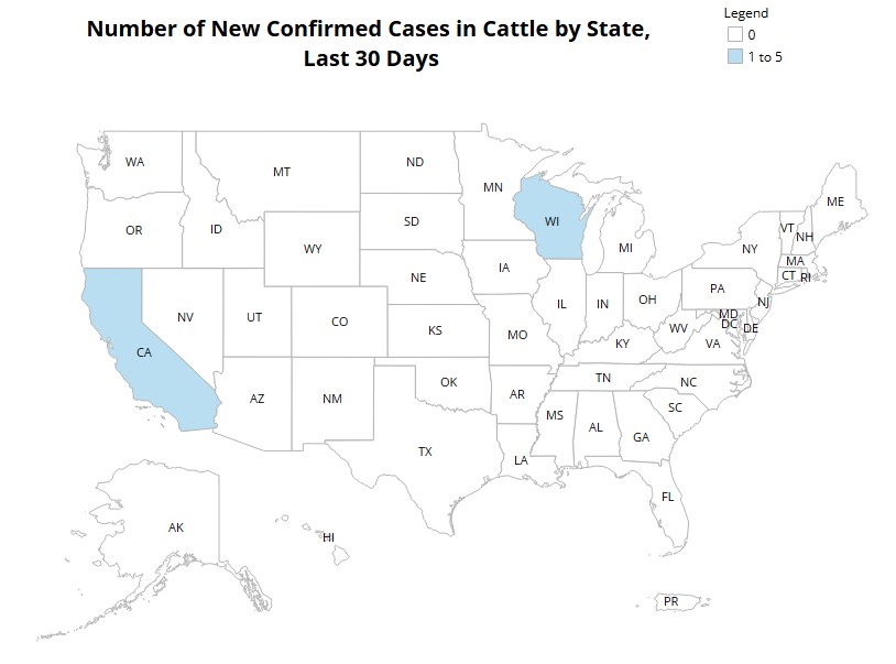 USDA Confirmed Cases of H5N1 in Dairy Cattle in the Last 30 Days as of December 15, 2025: 2