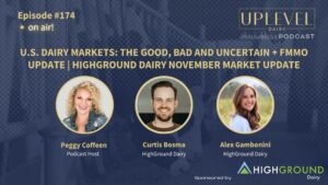 In this episode of the Uplevel Dairy Podcast, host Peggy Coffeen welcomes Curtis Bosma from HighGround Dairy to break down the good, the bad, and the uncertain in today’s dairy landscape, covering key shifts in dairy and feed markets and the impact of bird flu in California. HighGround’s Alex Gambonini also joins to provide an essential update on the Federal Milk Marketing Order rulemaking process, discussing recent developments, the final decision’s implications, and what lies ahead for the industry. This episode offers valuable insights to help dairy producers navigate today’s challenges and opportunities—you won’t want to miss it!