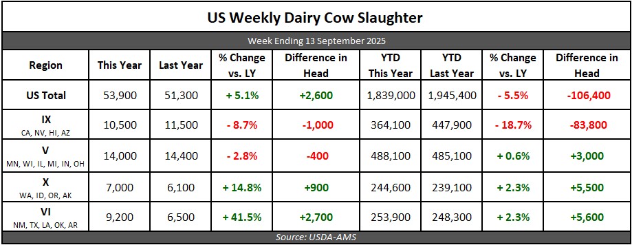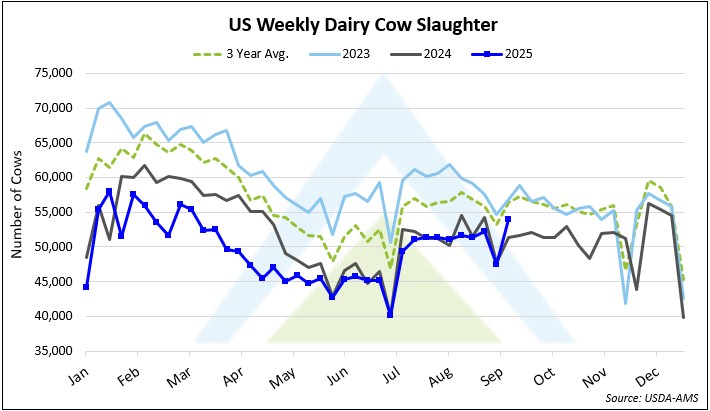 NOTE: Due to the government shutdown, USDA NASS reports including weekly dairy cow slaughter have ceased publication for the time being. The table and chart below shows the latest available data. HighGround will provide updates as they become available.