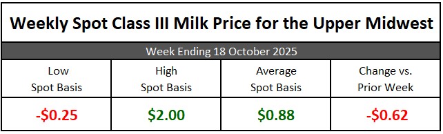 Weekly Spot Class III Milk Price for the Upper Midwest