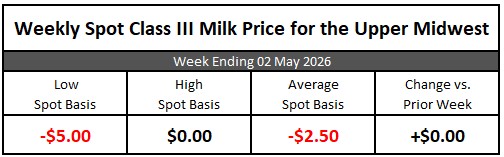 Weekly Spot Class III Milk Price for the Upper Midwest