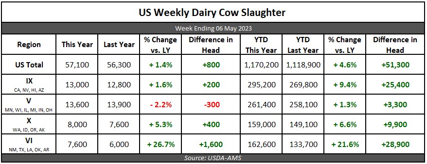 Weekly slaughter volume has been above the prior year for 12 consecutive weeks in Region VI (South-Central).